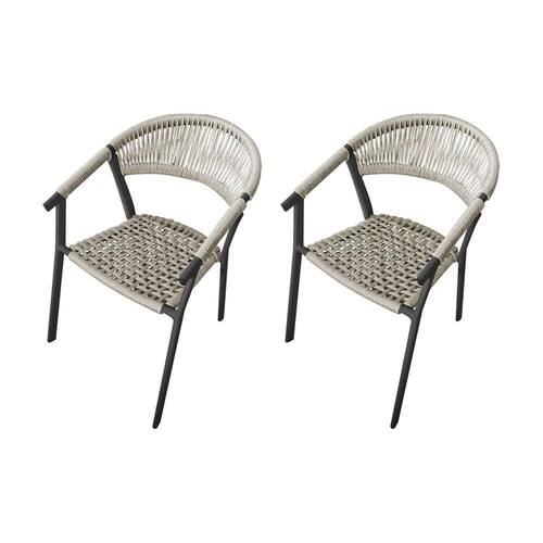 Kit 2 Cadeiras Decorativa Joana em Corda Náutica e Base em Alumínio Preta / Areia - Bege