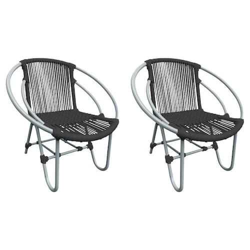 Kit 2 Cadeiras Decorativa Julia em Corda NÃutica e Base em AlumÃnio Cinza/preta