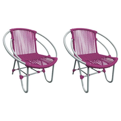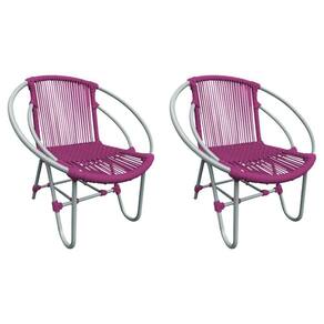 Kit 2 Cadeiras Decorativa Julia em Corda NÃutica e Base em AlumÃnio Cinza/ Rosa