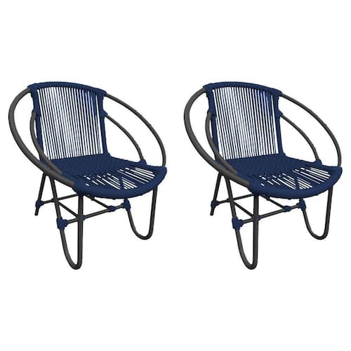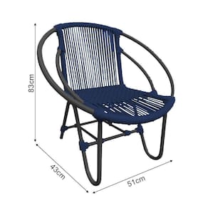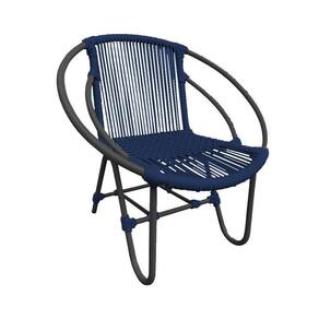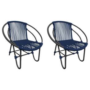 Kit 2 Cadeiras Decorativa Julia Em Corda Náutica E Base Em Alumínio Preta/ Azul Marinho - Cor: Azul
