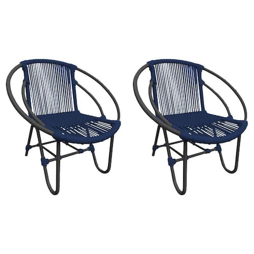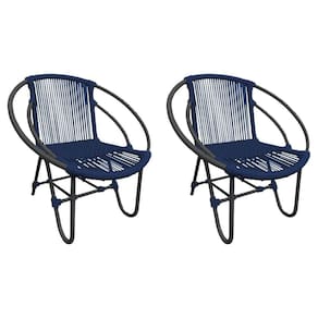 Kit 2 Cadeiras Decorativa Julia em Corda NÃutica e Base em AlumÃnio Preta/ Azul Marinho
