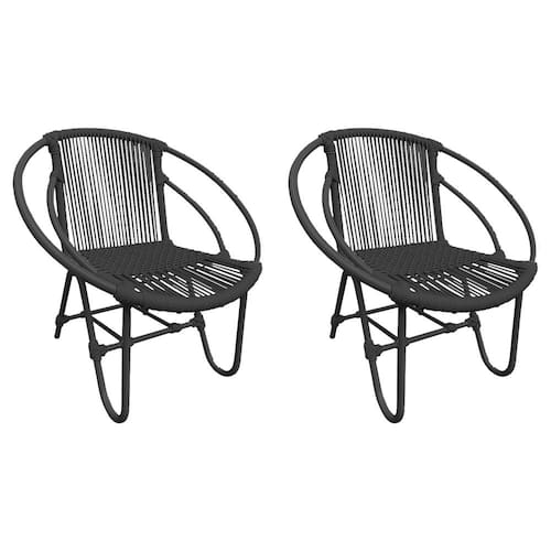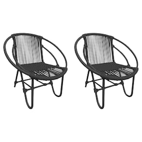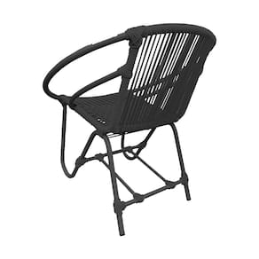 Kit 2 Cadeiras Decorativa Julia em Corda Náutica e Base em Alumínio Preta/preta - Preto