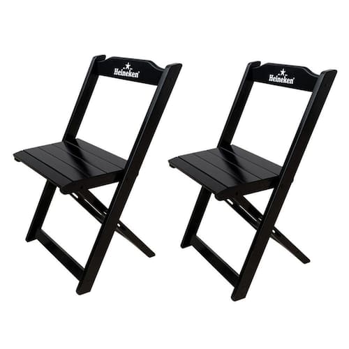 Kit 2 Cadeiras Dobráveis Madeira Personalizada Hei Preta - Cor: Preto