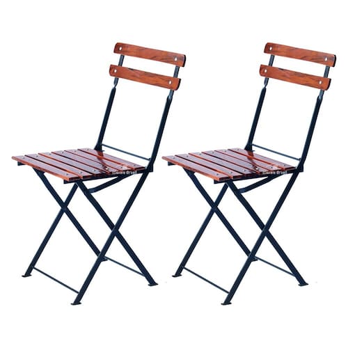 Conjunto com 2 cadeiras dobráveis em ferro preto e madeira maciça de lei, design versátil que une estilo clássico e moderno. Estrutura leve e resistente, com acabamento em verniz especial, ideal para ambientes internos ou externos. Fácil de armazenar e transportar.