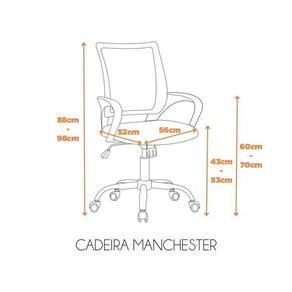 Perfeita para espaços compartilhados, a cadeira Manchester possui seu assento em espuma e base em tela junto a um apoio de lombar. Essa cadeira não possui o sistema relax, o que a torna mais simples, mas ainda assim muito confortável! Altura do Conjunto: 98 cm Ambiente: null Ambiente Principal: Escritório Cor: Preto Cor do Produto: Preto Informação Complementar: 2x Cadeira Dot Para Escritório Diretor com Rodízios Manchester Light Preto Largura: 56 cm Altura: 98 cm Peso: 9,8 kg Profundidade: 52 cm Necessita Montagem: Sim
