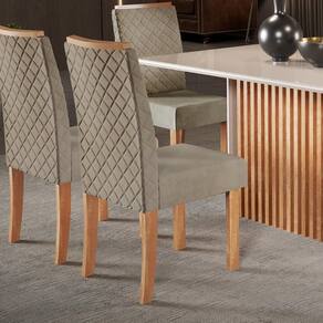 Kit com 2 Cadeiras Elegance Nuova Mel 100% MDF com Espaldar e Veludo Suede Bordado – Sofisticação e Conforto para sua Sala de Jantar