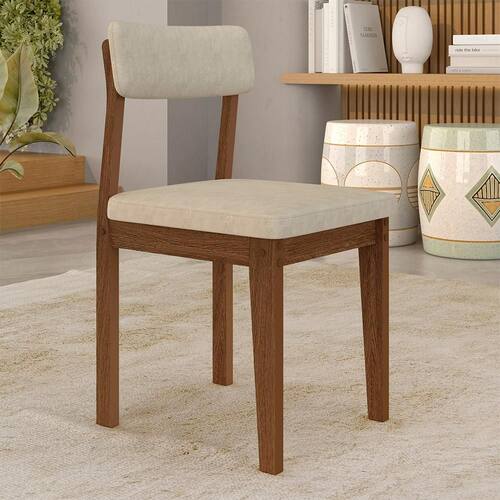 Detalhes Técnicos das Cadeiras: - Material da Estrutura: MDF 25mm e 18mm - Acabamento da Cadeira: Assento e Encosto Tapeçados - Assento/Encosto: D16 - Peso Suportado da Cadeira: 90 KG distribuídos - Facilidade da Montagem: Média - Tonalidade da estrutura da Cadeira: Freijó - Tonalidade do Tecido: Suede Bege - Pintura: UV Texturizada - Borda em PU