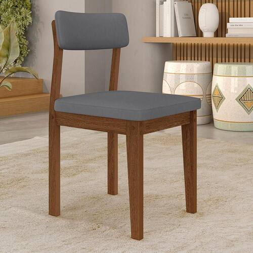 Detalhes Técnicos das Cadeiras: - Material da Estrutura: MDF 25mm e 18mm - Acabamento da Cadeira: Assento e Encosto Tapeçados - Assento/Encosto: D16 - Peso Suportado da Cadeira: 90 KG distribuídos - Facilidade da Montagem: Média - Tonalidade da estrutura da Cadeira: Freijó - Tonalidade do Tecido: Suede Cinza - Pintura: UV Texturizada - Borda em PU