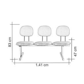 - Possui 1,00mt de comprimento e os pés tem 58cm de profundidade Altura do assento até o chão: 47 cm Ambiente Principal: Comércio Assento Estofado: Não Cada Assento Suporta Até (kg): 130 kg Cor: Preto Cor do Produto: Preto Informações Complementares: Sem apoio para braços Itens Inclusos: 2 - Assentos, Kit de parafusos, 2 - Encostos, 2 - Estruturas longarina Linha ou Coleção: Longarinas Manual de Montagem e Instalação: https://product-hub-prd.madeiramadeira.com.br/840955/documents/0b2eca75-4719-46b0-b802-f3d5c81e7c201257976manual.pdf Material da Base: Tubo Cromado Material do Assento: Almofada com Espuma Material do Braço: Ferro Necessita Montagem: Não Origem do Produto: Nacional Peso: 16,8 kg Possui Apoio para Braços: Não Quantidade de Itens: 3 Quantidade de Lugares: 03 Recomendações de Uso, Manutenção e Limpeza: Pano levemente úmido com água Ean: 7908308789357