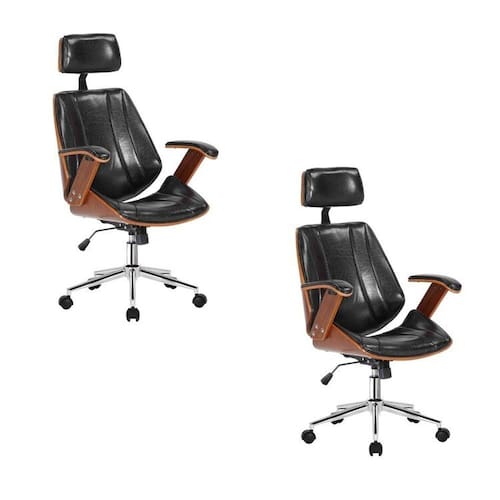 A cadeira Kopenhagen Presidente é toda revestida em couro ecológico e possui sua estrutura em madeira, o que a torna ótima por conta de seu design para salas de reuniões e presidência. Ela também possui o mecanismo relax, o que irá manter quem estiver sentado nela mais confortável, o que unido a seu encosto de cabeça é ainda mais confortável, além de ser possível ajustar a altura do assento! Altura do Conjunto: 124 cm Ambiente: null Ambiente Principal: Escritório Cor: Preto Informação Complementar: 2x Cadeira Escritório Presidente Giratória Kopenhagen com Apoia Cabeça Preto/Amadeirado Largura: 61 cm Altura: 124 cm Peso: 16,5 kg Profundidade: 63 cm Necessita Montagem: Sim