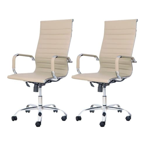 Kit 2 Cadeiras Escritório Stripes Presidente PU Nude Base Giratória Cromada Altura Ajustável - Bege Claro