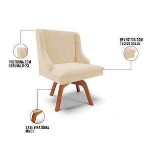 A Cadeira Estofada Lia possui design sofisticado e é ideal para quem busca aconchego e sofisticação na hora das refeições. A Base Giratória de Madeira é resistente e permite que se movimente com facilidade e ainda suporta até 120kg! Além disso, a Cadeira Estofada é produzida com Madeira Eucalipto de reflorestamento ecologicamente correta e o estofado é composto em espuma macia D-23 e revestido em tecido Suede, altamente resistente, agradável ao toque, confortável e versátil, ou seja, combina com vários estilos de decoração!