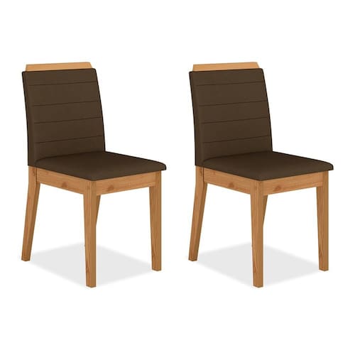 Detalhes Técnicos das Cadeiras: - Acabamento da Cadeira: Assento e Encosto Tapeçados - Almofada do Assento: Fixa - Cadeira Estofada: Sim - Peso Suportado da Cadeira: 90 KG - Facilidade da Montagem: Médial - Tonalidade da estrutura da Cadeira: Cinamomo - Tonalidade do Tecido: Suede Marrom - Assento: D16 - Encosto: D14 - Tipo de Pintura: UV Texturizada - Material da Estrutura: MDF 25mm e 18mm - Medida da Cadeira: 95CM x 44CM x 50CM