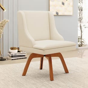 Escolher os móveis para a Sala de Jantar é uma das partes mais divertidas ao se decorar a casa, mas, é também um desafio, já que, os móveis devem ser duráveis, bonitos e harmonizar com o ambiente. Por isso, a Cadeira Estofada Lia é uma ótima opção, além de ser produzida em Madeira Eucalipto, ecologicamente correta, a Base Giratória em madeira suporta até 120 kg! Além disso, é um móvel confortável, composto em espuma D-23 e revestido em Linho, tecido versátil, confortável, fresco, durável e agradável ao toque. É um tecido de fácil limpeza e resistente a sujeiras e manchas. As Cadeiras Estofadas são ideais para combinar com mesas de madeira ou vidro, criando um ambiente aconchegante e sofisticado para suas refeições em família ou com amigos.