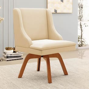 A Cadeira Estofada Lia possui design sofisticado e é ideal para quem busca aconchego e sofisticação na hora das refeições. A Base Giratória de Madeira é resistente e permite que se movimente com facilidade e ainda suporta até 120kg! Além disso, a Cadeira Estofada é produzida com Madeira Eucalipto de reflorestamento ecologicamente correta e o estofado é composto em espuma macia D-23 e revestido em tecido Suede, altamente resistente, agradável ao toque, confortável e versátil, ou seja, combina com vários estilos de decoração!