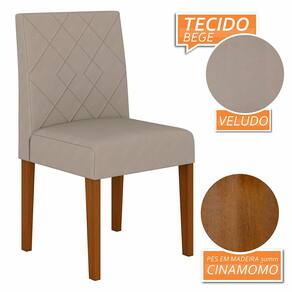 Kit 02 Cadeiras Hungria com estética contemporânea e receptiva, perfeita para todos os tipos de ambientes.Detalhes Técnicos das Cadeiras- Assento e Encosto Tapeçados, Estofados e Fixos- Cadeira suporta até 90KG- Facilidade da Montagem: Difícil- Tonalidade Cadeira: Cinamomo/Veludo Bege- Espuma do Assento: D16- Espuma do Encosto: D14- Material: Estrutura em MDF/ Pés em Madeira- Medida da Cadeira: A: 94CM x L: 50CM x P: 50CMConteúdo da Embalagem- 02 Cadeiras- Manual de Montagem- Acessórios para MontagemObservações Importantes- As imagens ambientadas são meramente ilustrativas e podem apresentar itens que não incorporam o produto;- Todos os nossos produtos são novos, acompanham documento fiscal e possuem garantia de 3 meses, essa garantia cobre somente defeitos de fabricação;- A entrega só será efetuada no endereço do CEP, caso o endereço seja diferente do CEP informado no pedido, a entrega terá cobrança adicional e o comprador arcará com as despesas;- Não realizamos entregas para zonas rurais, via caminhos fluviais e distritos, por isso não aceitamos CEP GERAL da região;- Não é possível realizar o agendamento de entrega do produto, é necessário que acompanhe o rastreio de seu pedido para saber a previsão de entrega;- As entregas somente serão realizadas para um responsável maior de idade (+18);- Enviamos para diversos estados, sendo assim nossas entregas são realizadas por transportadoras parceiras de nossa empresa. Confira as dimensões antes da compra e certifique-se de que o produto passará por elevadores, portas e corredores já que nossa entrega não inclui a subida de lances de escada, transporte por elevador e o lançamento de produtos, em caso de condomínios residenciais a entrega é feita somente até a portaria. Todas as entregas são realizadas em dias e horários comerciais;- Ao receber os seus produtos observe se a embalagem se encontra em perfeitas condições. Se você adquiriu algum móvel, confira atentamente a quantidade de volumes e o aspecto físico das embalagens. Confira também se a cor do móvel está de acordo com o seu pedido;- O prazo de cancelamento por arrependimento é de até 7 dias corridos a contar da data de recebimento;- Os produtos e assistências são enviados DESMONTADOS, MONTAGENS E DESMONTAGENS recomendamos sempre a contratação de um montador profissional e é válido lembrar que o custo desses serviços é por conta do comprador;- Objetos decorativos que aparecem na foto não acompanham o produto;- Evitar a exposição direta à luz solar e à umidade;- Para limpeza, limpar com pano macio e seco, não utilizar qualquer outro tipo de produtos químicos;- As cores do produto podem variar de acordo com o monitor, a iluminação do ambiente ou sua percepção visual
