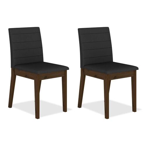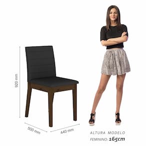 Detalhes Técnicos das Cadeiras: - Acabamento da Cadeira: Assento e Encosto Tapeçados - Almofada do Assento: Fixa - Cadeira Estofada: Sim - Peso Suportado da Cadeira: 90 KG - Facilidade da Montagem: Medial - Tonalidade da estrutura da Cadeira: Imbuia - Tonalidade do Tecido: Suede Preto - Assento: D16 - Encosto: D14 - Tipo de Pintura: UV Texturizada - Material da Estrutura: MDF 25mm e 18mm - Medida da Cadeira: 92CM x 44CM x 50CM