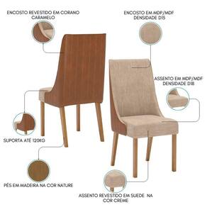 Kit 2 Cadeiras Estofadas Ivy Corano Caramelo Suede Creme Henn Corano Caramelo Suede Creme