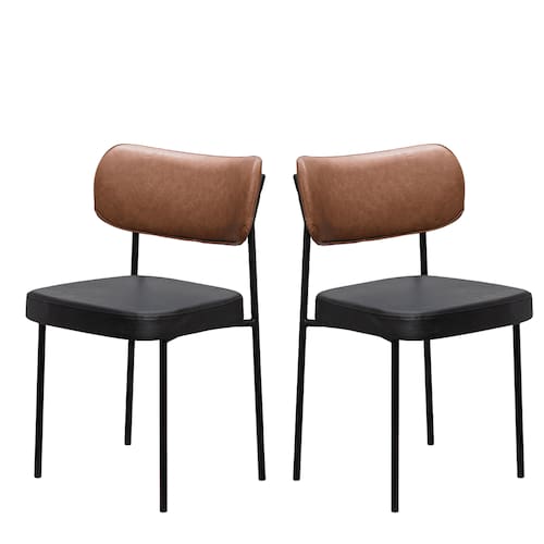 Kit 2 Cadeiras Estofadas Leather Para Sala Jantar em Aço - EdeCasaMoveis - Marrom | Preto