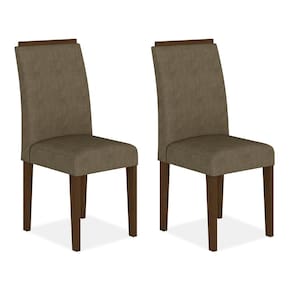 Detalhes Técnicos das Cadeiras - Assento e Encosto Tapeçados, Estofados e Fixos - Peso Suportado da Cadeira: 90 KG - Facilidade da Montagem: Média - Tonalidade da estrutura da Cadeira: Imbuia - Tonalidade do Tecido: Suede Capuccino - Espuma do Assento: D16 - Espuma do Encosto: D14 - Tipo de Pintura: UV Texturizada - Material da Estrutura: MDF 25mm e 18mm - Medida da Cadeira: 97CM x 44CM x 50CM