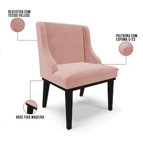 O Kit 2 Cadeiras Estofadas para Sala de Jantar Base Fixa de Madeira Preto Lia Veludo Rosê, da Ibiza é o que você precisa para deixar sua casa moderna e elegante, confira!