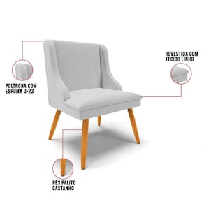Além de combinar com vários estilos de decoração, a Cadeira Estofada com Pés Palito vem ganhando o coração das casas brasileiras, deixando-as mais charmosas com um leve toque retrô! Pensando nisso, a Cadeira Estofada Lia foi projetada para dar um toque elegante e clean na decoração desde a Sala de Jantar, Sala de Estar, Varanda até Área Gourmet, tornando o ambiente especial para reunir a família e os amigos garantindo momentos memoráveis! O móvel é produzido com madeira de eucalipto de reflorestamento, ecologicamente correto, conferindo qualidade, segurança e resistência! A parte estofada é composta por espuma macia densidade D-23 e tecido Linho que é sinônimo de conforto e elegância, além de ser resistente, natural, fresco e não retém calor.