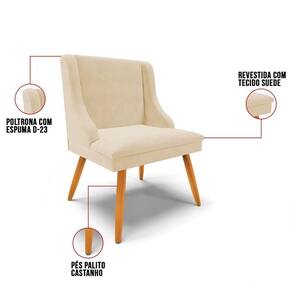 Além de combinar com vários estilos de decoração, a Cadeira Estofada com Pés Palito vem ganhando o coração das casas brasileiras, deixando-as mais charmosas com um leve toque retrô! Pensando nisso, a Cadeira Estofada Lia foi projetada para dar um toque elegante e clean na decoração desde a Sala de Jantar, Sala de Estar, Varanda até Área Gourmet, tornando o ambiente especial para reunir a família e os amigos garantindo momentos memoráveis! O móvel é produzido com madeira de eucalipto de reflorestamento, ecologicamente correto, conferindo qualidade, segurança e resistência! A parte estofada é composta por espuma macia densidade D-23 e tecido Suede agradável ao toque, macio, aconchegante e altamente resistente.