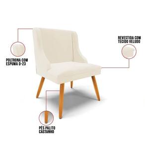 A Cadeira Estofada com Pés Palito vem ganhando o coração das casas brasileiras, deixando-as mais charmosas com um leve toque retrô! Pensando nisso, a Cadeira Estofada Lia foi desenvolvida para dar um toque elegante e clean na decoração da sua casa desde a Sala de Jantar, Sala de Estar, Varanda até Área Gourmet, tornando o ambiente especial para reunir a família e os amigos garantindo momentos memoráveis! O móvel é produzido com madeira de eucalipto de reflorestamento, ecologicamente correto, conferindo qualidade, segurança e resistência! A parte estofada é composta por espuma macia densidade D-23 e revestida em Veludo, tecido elegante e clássico, macio, aconchegante e altamente resistente.