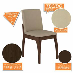 Kit 2 Cadeiras Sucre Possuem um ótimo tamanho e contam com encosto e assento estofados, um material de extrema qualidade e durabilidade e garante um toque agradável e macio.Detalhes Técnicos das Cadeiras:- Acabamento da Cadeira: Pintura com Assento e Encosto Tapeçados- Almofada do Assento: Fixa- Cadeira Estofada: Sim- Peso Suportado da Cadeira: 90 KG- Facilidade da Montagem: Média - Deve ser montada por um Profissional- Tonalidade da estrutura da Cadeira: Imbuia- Tonalidade do Tecido: Veludo Bege- Espuma do Assento: D 23- Espuma do Encosto: D 16- Tipo de Pintura: UV Texturizada- Material da Estrutura: MDF 25mm e 18mm- Medida da Cadeira: 87CM x 46CM x 63CMConteúdo da Embalagem:- 02 Cadeiras- Manual de Montagem- Acessório para MontagemObservações Importantes- As imagens ambientadas são meramente ilustrativas e podem apresentar itens que não incorporam o produto;- Todos os nossos produtos são novos, acompanham documento fiscal e possuem garantia de 3 meses, essa garantia cobre somente defeitos de fabricação;- A entrega só será efetuada no endereço do CEP, caso o endereço seja diferente do CEP informado no pedido, a entrega terá cobrança adicional e o comprador arcará com as despesas;- Não realizamos entregas para zonas rurais, via caminhos fluviais e distritos, por isso não aceitamos CEP GERAL da região;- Não é possível realizar o agendamento de entrega do produto, é necessário que acompanhe o rastreio de seu pedido para saber a previsão de entrega;- As entregas somente serão realizadas para um responsável maior de idade (+18);- Enviamos para diversos estados, sendo assim nossas entregas são realizadas por transportadoras parceiras de nossa empresa. Confira as dimensões antes da compra e certifique-se de que o produto passará por elevadores, portas e corredores já que nossa entrega não inclui a subida de lances de escada, transporte por elevador e o lançamento de produtos, em caso de condomínios residenciais a entrega é feita somente até a portaria. Todas as entregas são realizadas em dias e horários comerciais;- Ao receber os seus produtos observe se a embalagem se encontra em perfeitas condições. Se você adquiriu algum móvel, confira atentamente a quantidade de volumes e o aspecto físico das embalagens. Confira também se a cor do móvel está de acordo com o seu pedido;- O prazo de cancelamento por arrependimento é de até 7 dias corridos a contar da data de recebimento;- Os produtos e assistências são enviados DESMONTADOS, MONTAGENS E DESMONTAGENS recomendamos sempre a contratação de um montador profissional e é válido lembrar que o custo desses serviços é por conta do comprador;- Objetos decorativos que aparecem na foto não acompanham o produto;- Evitar a exposição direta à luz solar e à umidade;- Para limpeza, limpar com pano macio e seco, não utilizar qualquer outro tipo de produtos químicos;- As cores do produto podem variar de acordo com o monitor, a iluminação do ambiente ou sua percepção visual.
