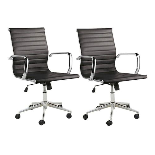 Kit 2 Cadeiras Executivas Escritório Royal Baixa PU Preta Gran Belo Otima para ambientes de trabalho este produto se diferencial pelo seu design e acabamento, a executiva Royal tem seu revestimento todo em Poliuretano e estrutura em aço Cromado, ainda conta com ajuste de altura e rodízios em nylon ou seja tudo que uma cadeira de escritório tem que ter para tornar o ambiente de trabalho elegante, confortável e prático. Este pode ser o primeiro passo para consolidar um escritório de sucesso.