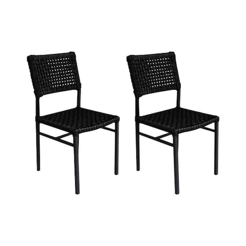 Kit 2 Cadeiras França Corda Náutica Base Em Alumínio Preto/preto - Cor: Preto