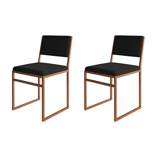 Kit 2 Cadeiras Industrial Isa Veludo Base Cobre para Mesa Sala Jantar Cozinha Decor - Cobre/preto