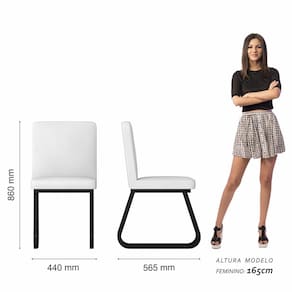 Detalhes Técnicos das Cadeiras - Assento e Encosto Tapeçados, Estofados e Fixos - Assento: D16 - Encosto: D14 - Estrutura: Metálica - Tonalidade: Preto Fosco/Corino Branco - Medida de cada Cadeira: Altura: 86cm x Largura: 44cm x Profundidade: 56,5cm - Peso Suportado da Cadeira: 90KG - Facilidade da Montagem: Média