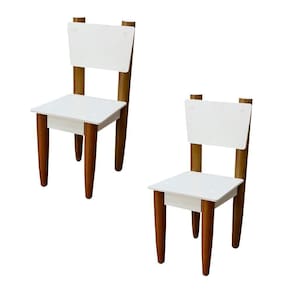Kit 2 Cadeiras Infantil Avião Palito Branca Assento Laminado Design Quarto Menina Menino Clean Mobília Decor Cadeirinha Infantil Pé Palito Cadeirinha resistente para quartos infantis, brinquedotecas e escolinhas, com assento Branco TX e pés palito em madeira de eucalipto, unindo conforto, estabilidade e um visual retrô que combina com diversos ambientes.? Medidas: 55 cm de altura total (assento a 29 cm), 26 x 26 cm; peso 2,7 kg; suporta até 40 kg.?