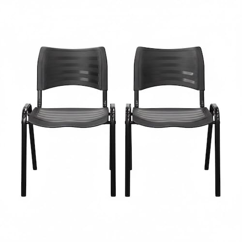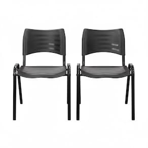 Kit 2 Cadeiras Iso Fixa Empilhável Reforçada para Recepção, Escritório, Igreja Cor Preta - Combo Stock