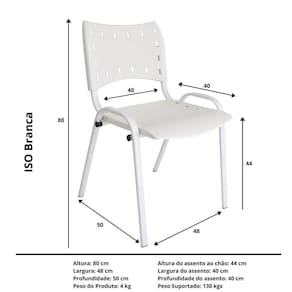 Kit 2 Cadeiras Iso Para Escola Escritório Comércio Indústria Branca Base Branca