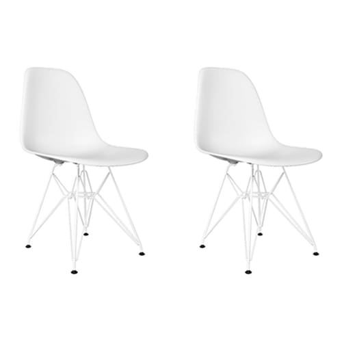 Kit 2 Cadeiras Jantar Assento Branco Eiffel Eames Base Ferro Branco