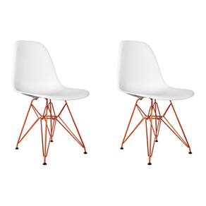 Kit 2 Cadeiras Jantar Assento Branco Eiffel Eames Base Ferro Cobre - Laranja