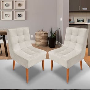 Com um estofado elegantemente trabalhado em capitonê, a Cadeira Nuvem combina um visual estruturado com um toque de suavidade. Seu encosto levemente inclinado proporciona suporte ergonômico, enquanto a base firme e os pés em madeira maciça garantem durabilidade e charme. O design quadriculado do estofado adiciona um toque geométrico moderno, equilibrando o clássico e o contemporâneo. Versátil, essa cadeira se adapta perfeitamente a ambientes sofisticados, desde salas de jantar até espaços de recepção, agregando estilo e conforto em cada detalhe.