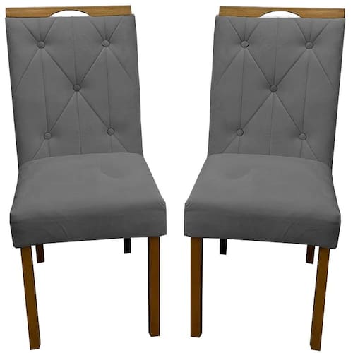 Kit 2 Cadeiras Jasmim em Veludo Estofadas WM Estofados Cor Cinza