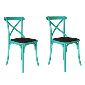 Kit 2 Cadeiras Katrina Assento Corano Preto Aço Azul Turquesa