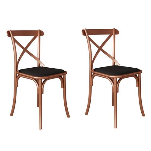 Kit 2 Cadeiras Katrina Assento Corano Preto Aço Cobre - Laranja