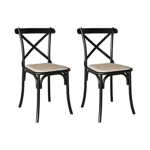 Kit 2 Cadeiras Katrina Preta Assento Corano Bege Aço Asturias - Cor: Bege - Preto