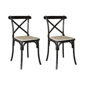 AS IMAGENS SÃO MERAMENTE ILUSTRATIVAS, PODENDO HAVER PEQUENA VARIAÇÃO NA TONALIDADE DA COR DEPENDENDO DE CADA TELA OU MONITOR.Kit 2 Cadeiras Katrina Preta Assento Corano Bege AÃo