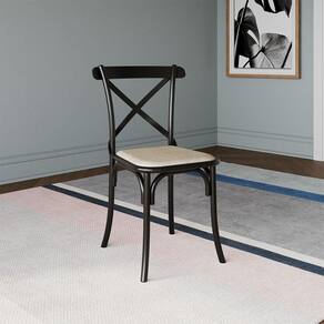 Kit 2 Cadeiras Katrina Preta Assento Corano Bege Aço Asturias