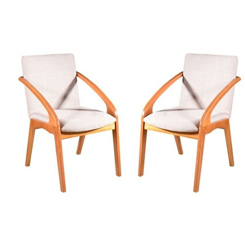 Faz parte do anúncio: 2 Cadeiras Madeira Maciça Estofada com Braço - Orquídea - Harmonia Salas Obs.: Objetos de decoração não acompanham o produto.