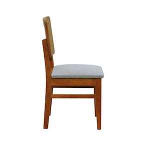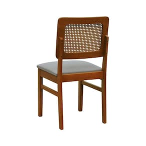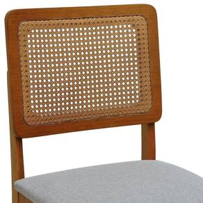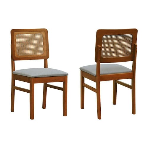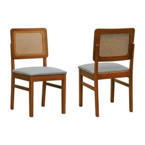 Kit 2 Cadeiras Madeira Maciça Lyon Encosto Telinha Amêndoa - Amêndoa Assento Estofado Linho Cinza Mescla Impermeável