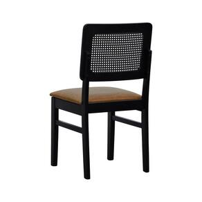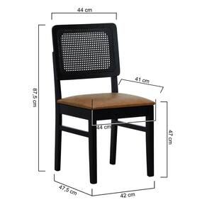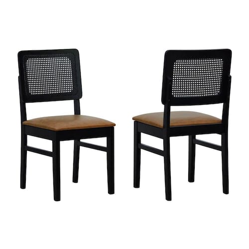 Kit 2 Cadeiras Madeira Maciça Lyon Encosto Telinha - Preto Assento Estofado Corano Marrom Mescla -
