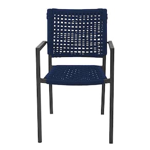 Kit 2 Cadeiras Marília Corda Náutica Base em Alumínio Preto/azul Marinho - Azul Royal