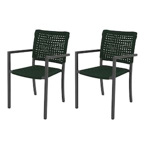 Kit 2 Cadeiras Marília Corda Náutica Base Em Alumínio Preto-verde Musgo - Cor: Verde